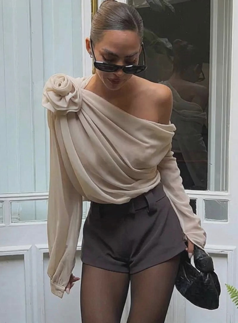 Manga delicada, essa blusa traz feminilidade e frescor para qualquer ocasião, desde encontros casuais até eventos mais formais.