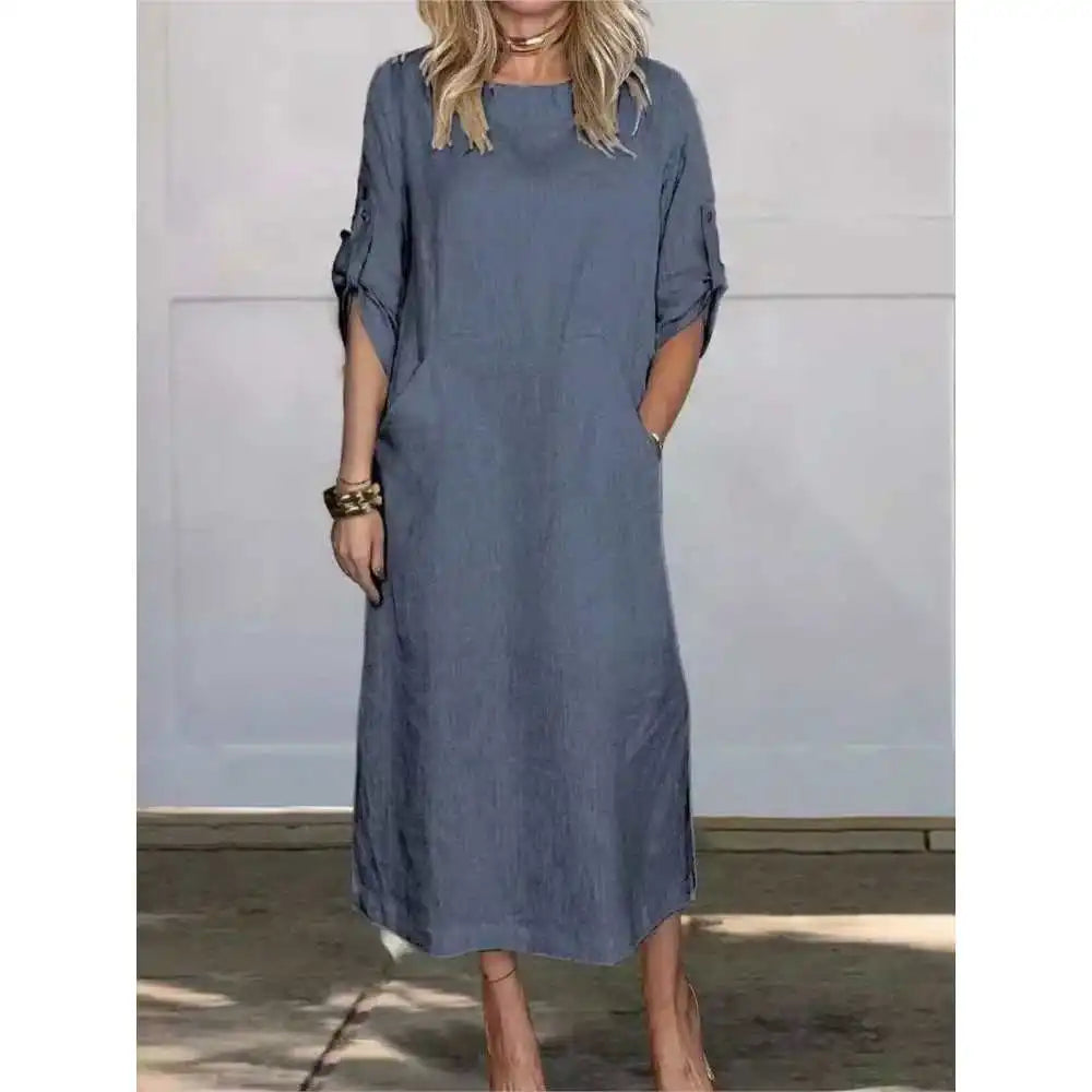 O Vestido Midi Eslovênia é a escolha ideal para quem busca elegância com conforto. Com modelagem ampla e fluida, ele oferece caimento leve, movimento sofisticado e versatilidade para diversas ocasiões — do dia a dia a eventos especiais.