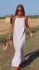 Com alças finas e decote reto, o vestido alonga a silhueta e garante um visual minimalista e elegante. A fenda lateral discreta traz movimento e modernidade, permitindo combinações versáteis para diferentes ocasiões.